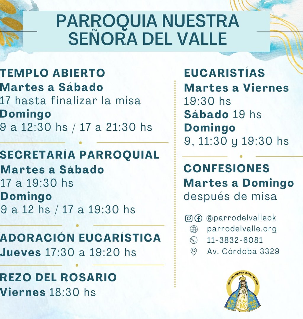 19:30 hs. Renovación carismática. (Invierno 19:00)